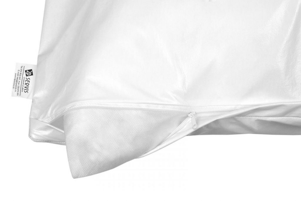 Omyvatelný nepropustný povlak na polštář brání pronikání tekutin, prachu a roztočů, je prodyšný, velmi snadno udržovatelný, zapínání na zip. Níže uvádíme vlastnosti nepropustných a omyvatelných lůžkovin, které vyrábíme z nového typu materiálu. Materiál: 100% polyester s PU zátěrem. Rozměr: 70 x 90cm. Praní: na 90°C.