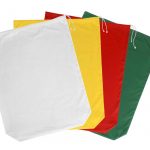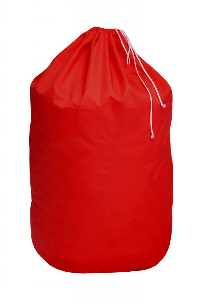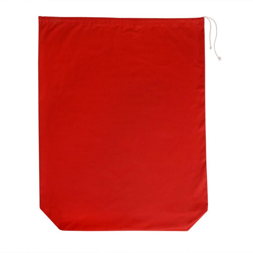 Červený pytel na špinavé prádlo se zavíráním na stahovací šňůrku. Materiál: 65% polyester / 35% bavlna. Rozměr: 73 x 110cm. Praní: na 60°C.