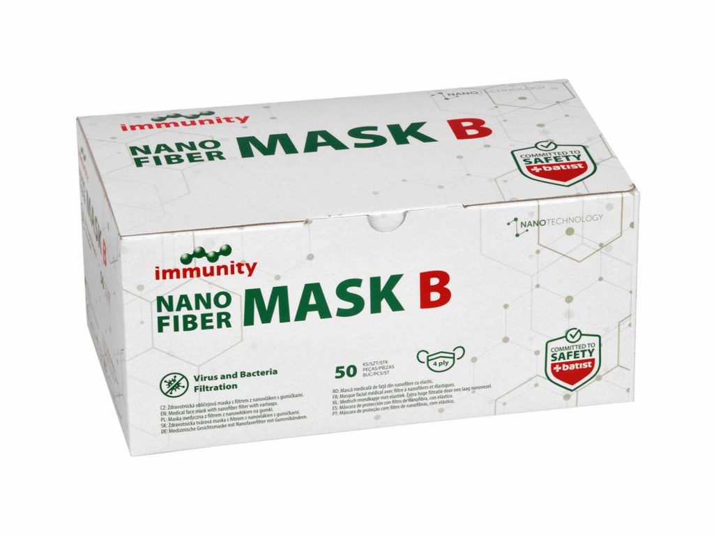 - Nanovlákenná vrstva – extrémně účinná bariéra proti virům a bakteriím.
