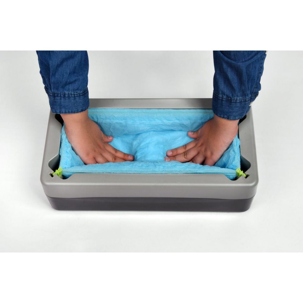 - Rychlé a hygienické použití – bez nutnosti ohýbání, kontaktu s návleky nebo obuví.