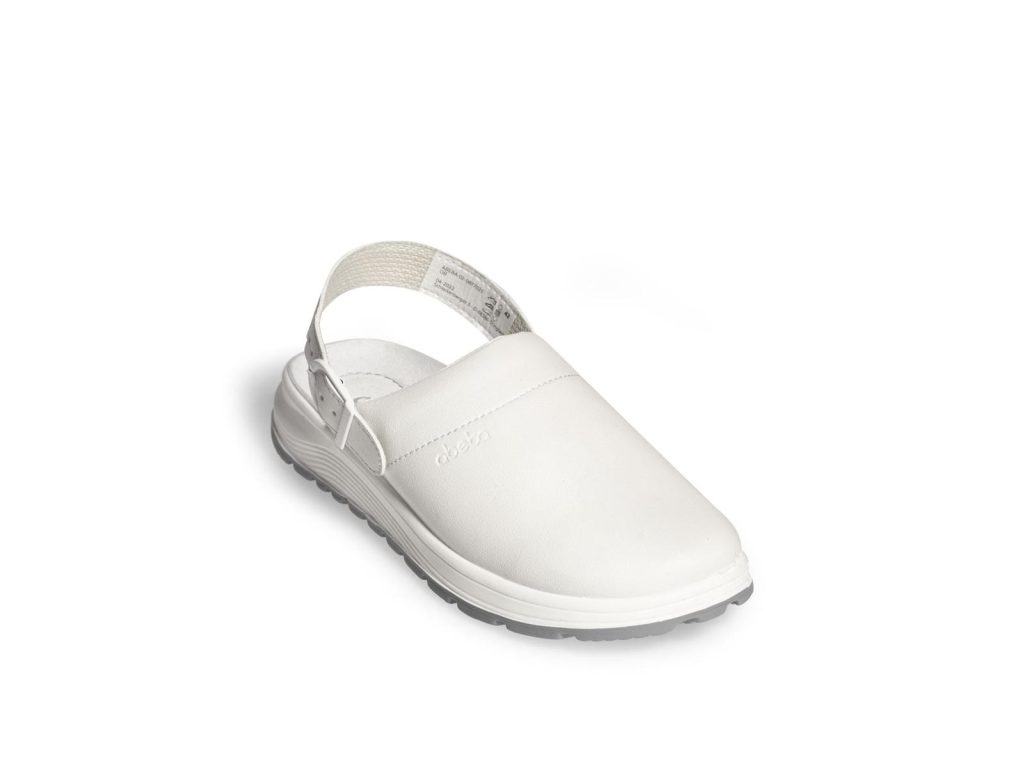 Abeba 87021 je ideální pracovní obuv pro kuchyňské a potravinářské provozy, s plnou špičkou dobře chránící prsty, s překlopným a délkově nastavitelným páskem, s antibakteriální úpravou sanitized, svršek obuvi z hladké usně, podešev je protiskluzová a odolná proti olejům i živočišným tukům s certifikací SRC.