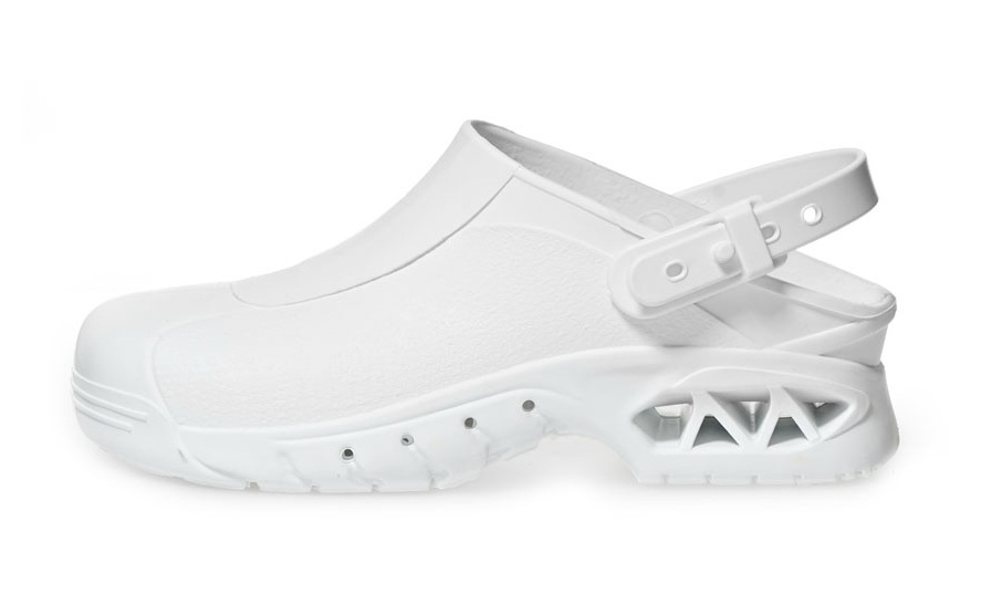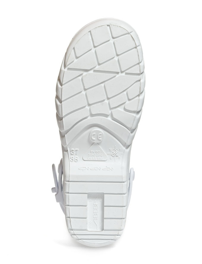 Obuv pro operační sály a čisté prostory Abeba 9600 se vyznačuje pohodlným nošením, ke kterému přispívá překlopný a nastavitelný patní pásek, který zároveň slouží, i jako bezpečnostní prvek, díky protiskluzové certifikaci SRC má vysokou odolnost proti skluzu, lze omývat dezinfekčními roztoky, nebo prát na 60°C, obuv je ze speciálního materiálu vhodného pro autokláv při 134°C.