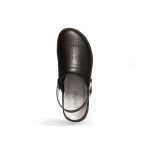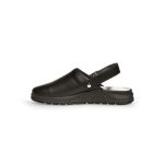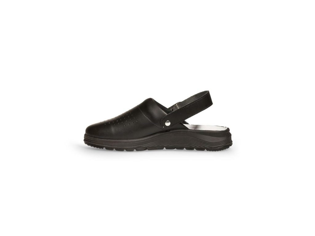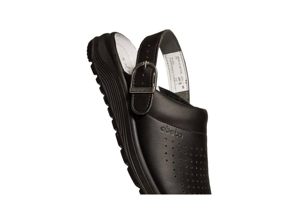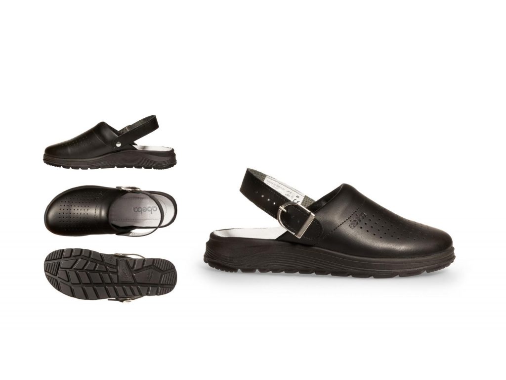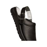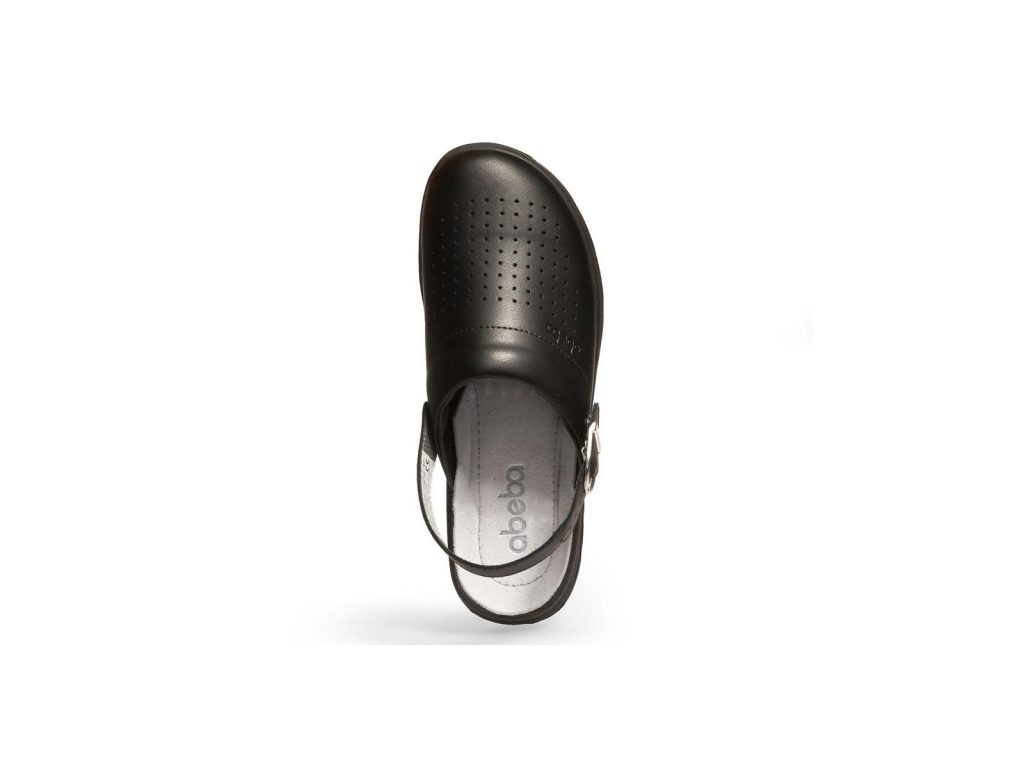 Pracovní pantofle obuv Abeba 87030 mají nastavitelný a překlopný patní pásek, protiskluzovou podešev s certifikátem SRC, která je odolná proti olejům a živočišným tukům, vrchní část obuvi je perforována pro lepší odvětrávání.