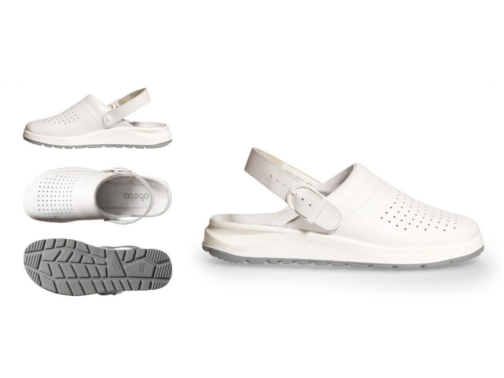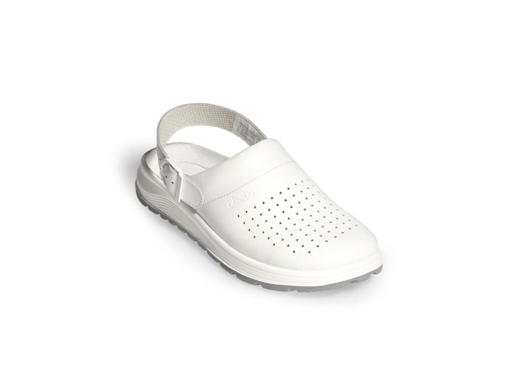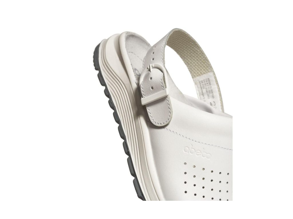 Zdravotní obuv Abeba 87020 s protiskluznou podešví SRC, která je odolná proti olejům a živočišným tukům, hladká useň s perforací pro lepší odvětrávání, překlopný a regulovatelný patní pásek.