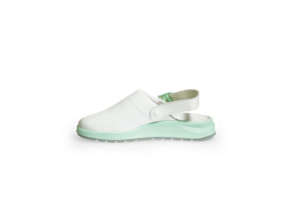Antistatická zdravotní obuv Abeba 85081 je vyrobena z hladké usně, patní pásek je překlopný a délkově nastavitelný, podešev je protiskluzová s certifikací SRC, která je odolná proti benzínu, olejům a živočišným tukům, stélka má úpravu Sanitized zabraňující tvorbě bakterií, CE EN ISO 20347:2012, TUV GS prověřeno na bezpečnost DIN 4843, část 100, odstavec 3.1. v.8/93.