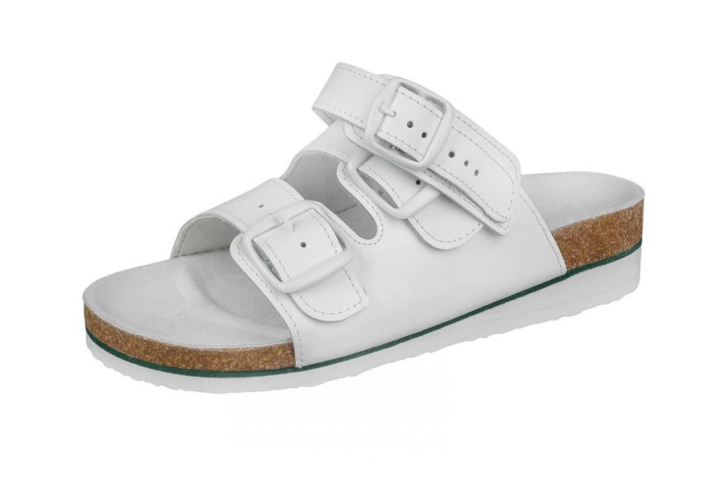 Zdravotní obuv dámská sandále S3K je velice známá a lehká pracovní obuv s novým typem korkové stélky, která nepraská a je hloubkově měkčená, má svršek a stélku z přírodní usně, zelená mezipodešev tlumí nárazy při chůzi, nešpinící podešev Evag s protiskluzným účinkem, 2 nártní nastavitelné pásky, překlopný a nastavitelný pásek.