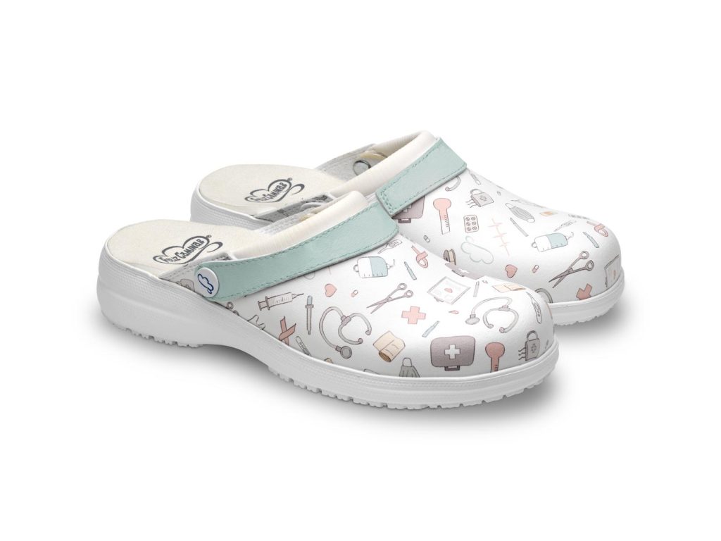 Mycrom Medic je velmi lehká a protiskluzová obuv OB + SRC + E. Protiskluzová podešev EVA Extralight umožňuje dokonalé anatomické a flexibilní přizpůsobení, lehkost a optimální přilnavost. Podešev EVA, stélka potažená kůží je antibakteriální a prodyšná. Pohodlné a prospěšné pro uživatele, kteří zůstávají na nohou po dlouhou dobu, snižuje svalovou únavu. Překlopný patní pásek se přizpůsobí patě. Obuv lze prát v pračce na 30°C. Materiál: nepromokavé a prodyšné mikrovlákno. Normy: UNE-EN ISO 20347: 2012 Standard OB + SRC + E (Úroveň ochrany a protiskluzovovosti). Certifikace: štítek INESCOP VEGAN (záruka, že žádný z materiálů použitých při výrobě obuvi není živočišný derivát). Značení: Podle charakteristik definovaných ve směrnici 89/686 / ES.