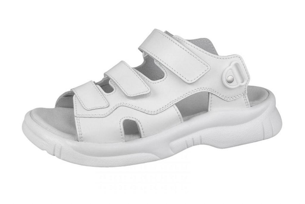 Zdravotnická pracovní obuv sandále 519W je velmi příjemná a lehká obuv trekingového stylu, anatomická stélka se správnou podporou nohy při chůzi i delším stání, stélka a vrch z přírodní usně, bílá nešpinící PUR podešev protiskluzová dle normy SRA, vysoká životnost s nízkou mírou opotřebení, vhodná k dlouhodobému nošení.