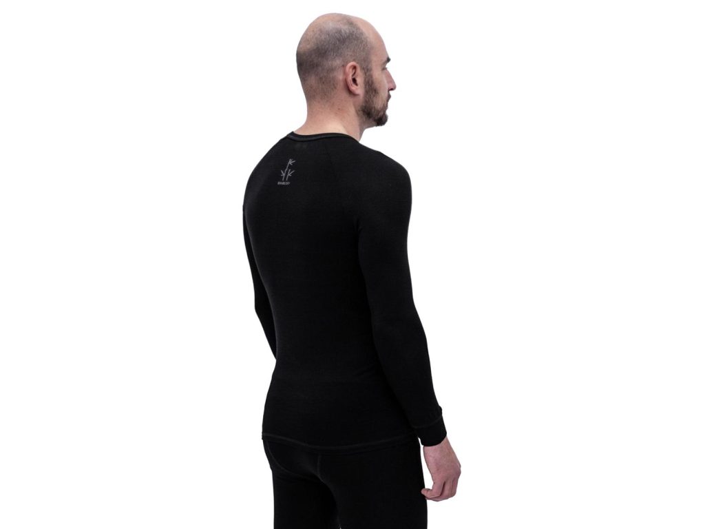 Bambusové tričko pánské Bambusky s dlouhými rukávy v černé barvě vyrábíme z jemného přírodního materiálu bambusové viskózy, které se přezdívá chytré vlákno. Bambusové oděvy jsou hebky měkké, prodyšné a k pokožce velmi příjemné. Bambusové oblečení má navíc antibakteriální vlastnosti díky tomu, že jsou bambusová vlákna přirozeně rezistentní proti plísním i bakteriím. Bambusové oblečení má navíc termoregulační schopnost, v létě chladí a v zimě hřeje. V bambusovém oblečení příjemně voníte celý den – bambusová vlákna obsahují přírodní složky, které nedovolí průniku a následnému usazování potu či jiným nepříjemným pachům ve struktuře tkaniny. Materiál: 95% bambusová viskóza 5% bavlna, 210g/m2. Praní: na 30°C.