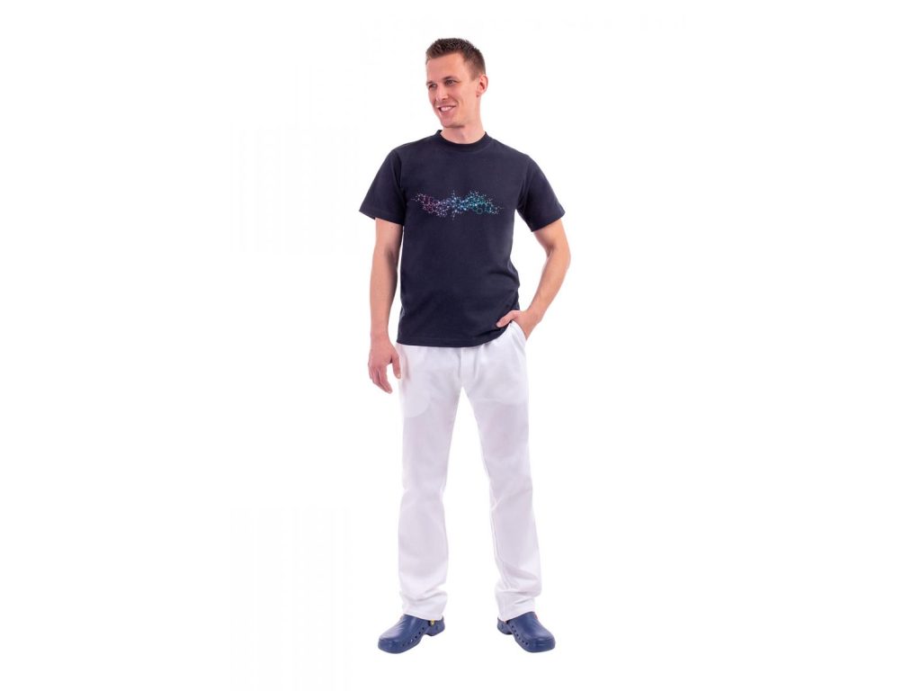 Všechna trika máte sepraná? Nebo vám vaši teenageři ze všech vyrostli? Nevěšte hlavu, přicházíme vám na pomoc s bavlněný trikem modré barvi a universálního střihu. Triko tak bude slušet pánům i dámám. Použitá 100% bavlna vyšší gramáže nezpůsobuje alergie, je výborně prodyšná a skvěle saje pot. Triko s krátkými rukávy a kulatým výstřihem zdobí originální potisk mřížky. V tomto triku se budete cítit dobře v práci, doma i na výletě.
