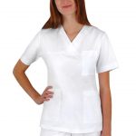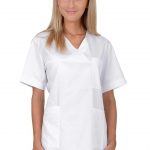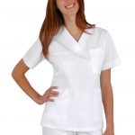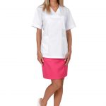 Dámská bílá pracovní halena Julia je navržena tak, aby dokonale padla každé postavě. Její délka do poloviny stehen a projmutý střih zvýrazňují ženskou siluetu, aniž by omezovaly v pohybu. Díky praktickému výstřihu do „V“ halena nejen lichotí dekoltu, ale zároveň poskytuje dostatek prostoru pro pohodlné oblékání. Oblékání přes hlavu je klasické, spolehlivé a usnadňuje manipulaci i při častém převlékání.