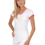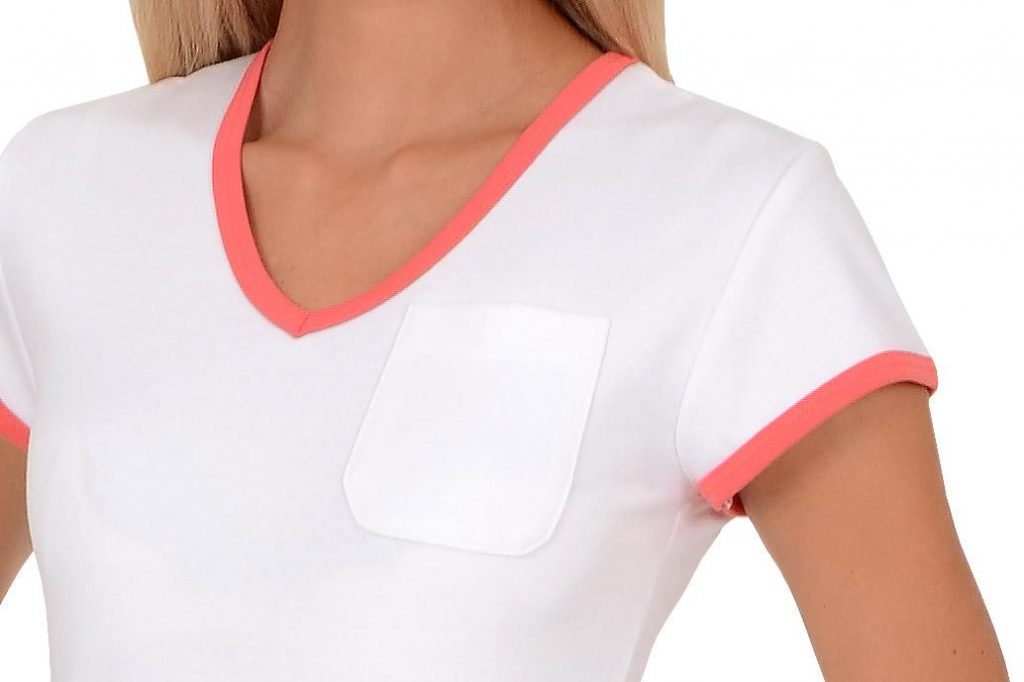 Dámské tričko Vito Duo s lehce tvarovaným střihem, decentní kapsičkou a výstřihem do V je šito z velmi příjemného a zdravotně nezávadného materiálu. Materiál: 100% bavlna, 190 – 200g/m2. Praní: na 40°C.