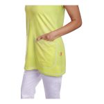 Dámská tunika je rovného střihu, který je mírně projmutý v pase, a tím opticky vytváří pěknou siluetu, aniž by omezoval volnost pohybu. Krátké rukávy zajišťují komfort i při náročnějších činnostech a zároveň pomáhají udržet tělesnou teplotu během teplejších měsíců nebo ve vyhřátých provozovnách.