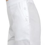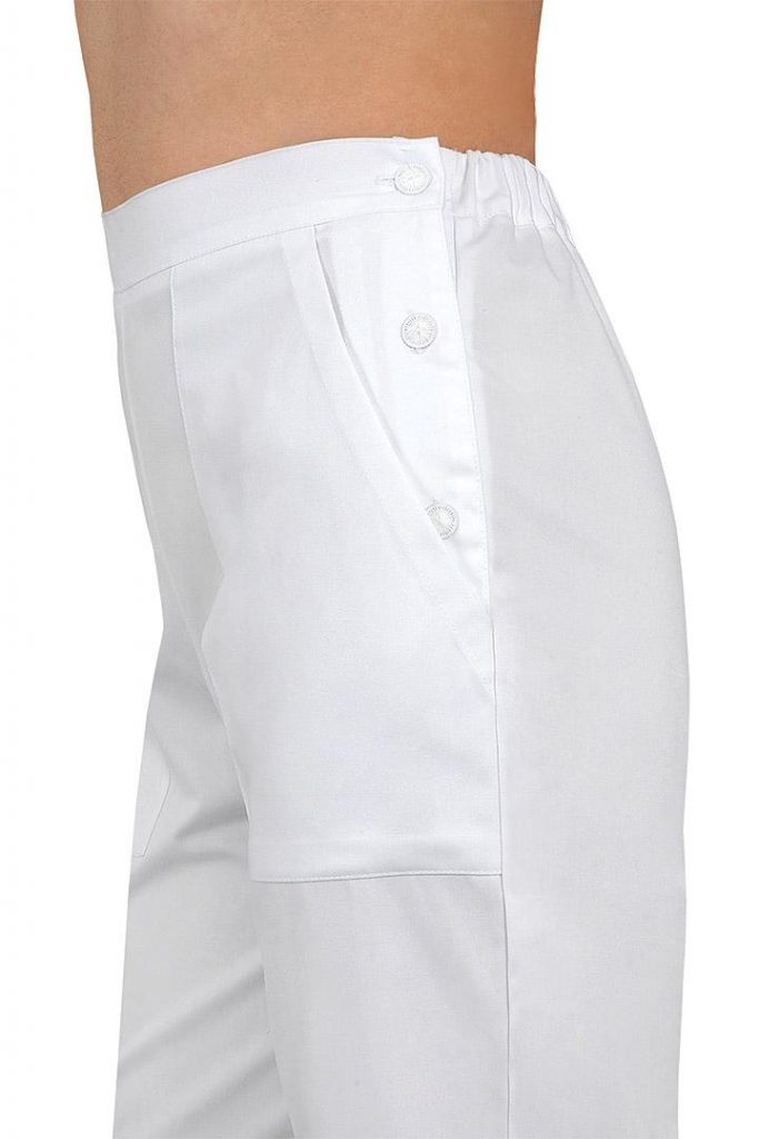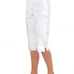 Dámské 3/4 kalhoty bílé Bocci Capri do pasu s bočním zapínáním a gumou v části pasu, boční rozparky na koncích nohavic, 2 přední prostorné kapsy. Materiál: 100% bavlna, sanfor., merc. 165g/m2. Praní: na 95°C.