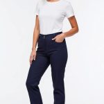 Dámské lékařské kalhoty Denims Navy – tmavě modrá elegantního džínového střihu s rovnými nohavicemi a klasickým předním zapínáním na zip. Materiál: 97% bavlna, 3% elastan, 200g/m2.