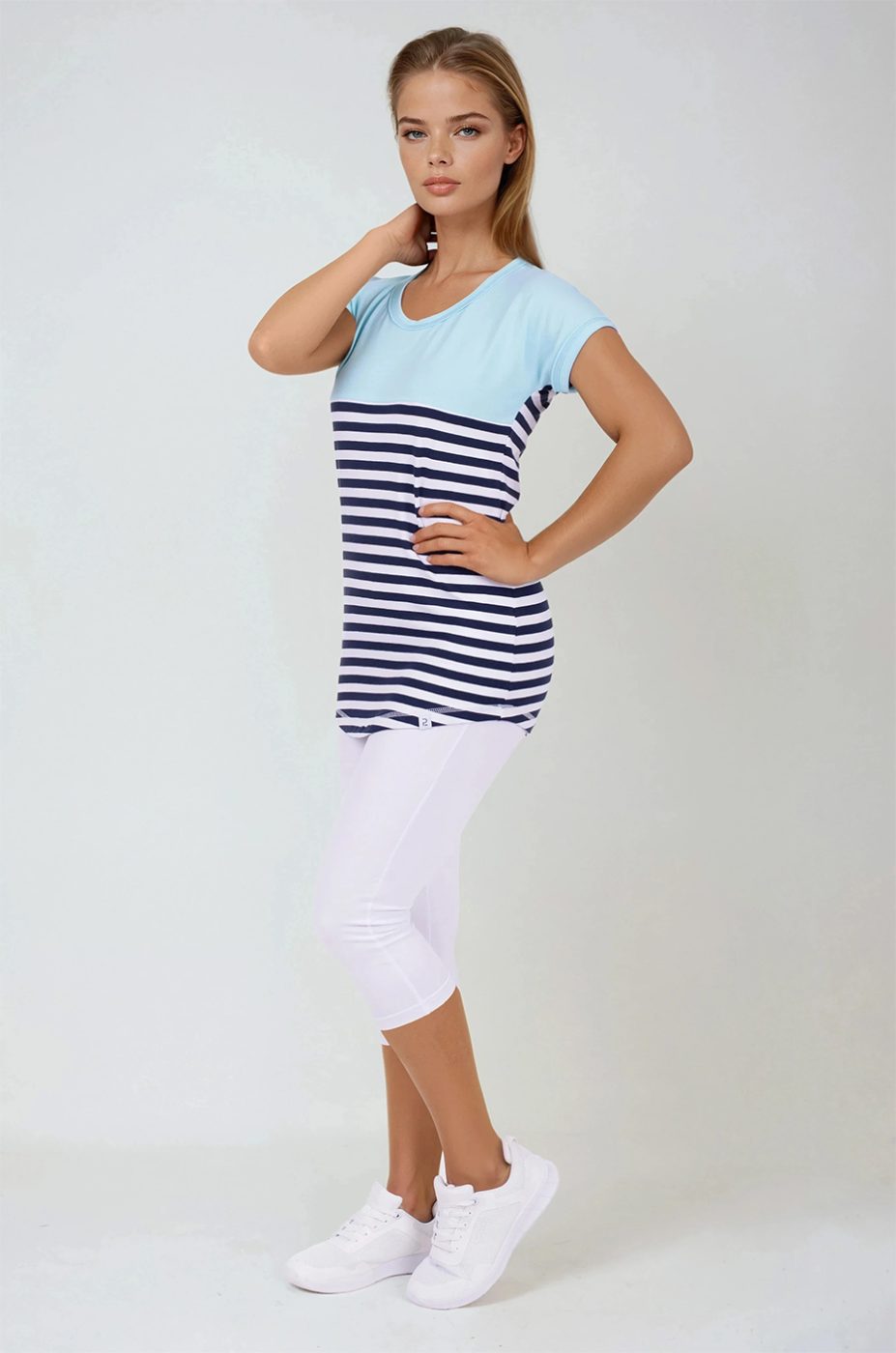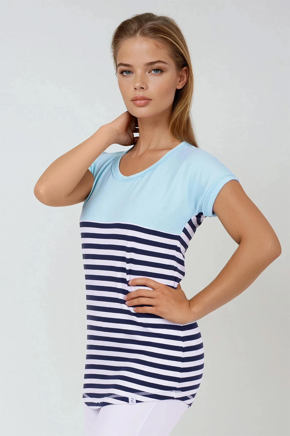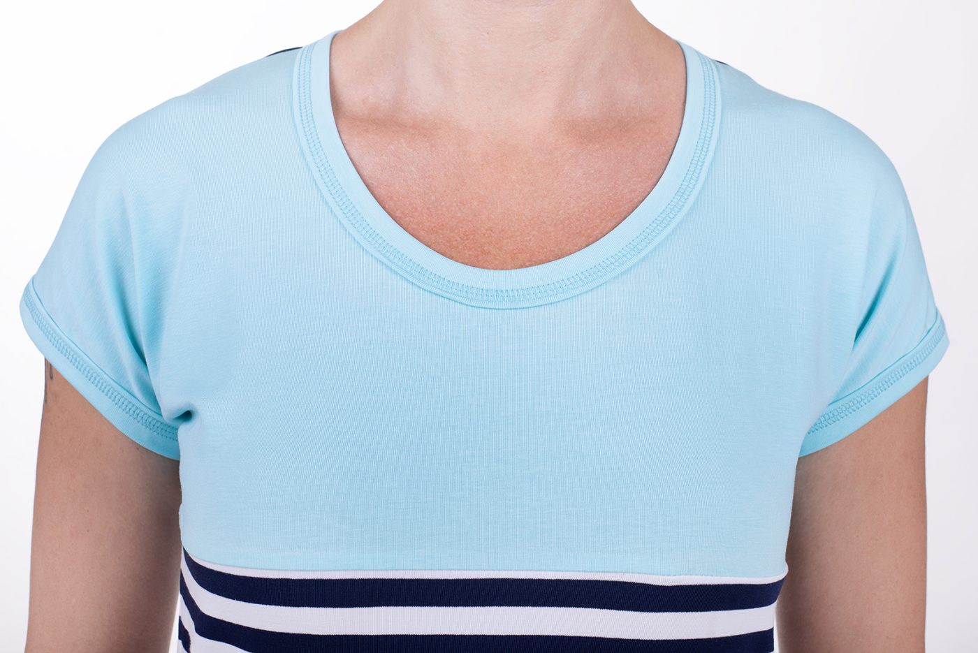 Dámské triko Modrava má lehce vypasovaný střih, krátké rukávy, prodloužený zadní díl, kulatý výstřih, materiál je dobře prodyšný a na dotek velmi příjemný. Materiál: 92% bavlna, 8% elastan, 210g/m2. Praní: na 40°C.