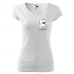 Moderní dámské tričko Šťastný úsměv New s velmi krátkým rukávem, kulatým průkrčníkem s olemováním, ramena zpevněná všitým proužkem, projmutým střihem v bocích. Materiál: 100% česaná bavlna, 150g/m2. Praní: 40°C.