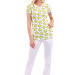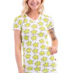 Dámské triko Vito Flora s limetkovým potiskem, výstřihem do V a krátkými rukávy, má lehce projmutý střih, dík kterému je nošení velmi pohodlné a bude vás bavit. Materiál: 92% bavlna 8% elastan, 210g/m2. Praní: na 40°C.