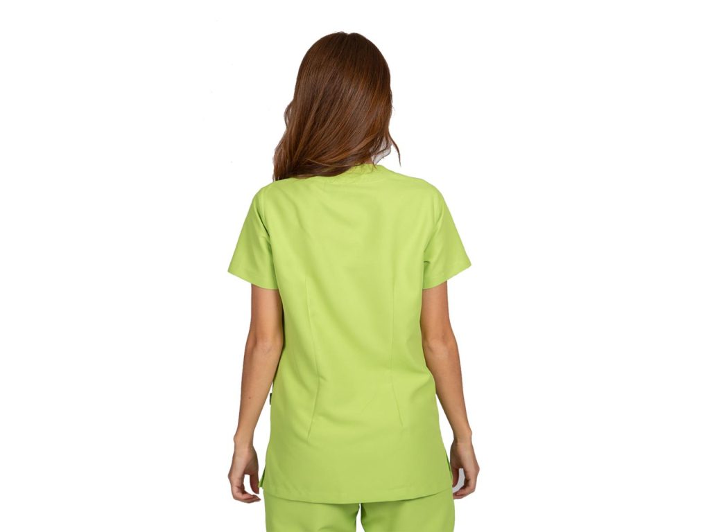 Tunika dámská pracovní Sonia v pistáciové barvě je moderní a funkční oděv nejen pro profesionály. Halena má krátké rukávy, výstřih do V, skryté zapínání na druky a 2 přední kapsy. Haleny jsou dobře prodyšné, odolné vůči postříkání bělidly, jsou rychleschnoucí bez nutnosti žehlení a odpuzují vlasy i srst domácích mazlíčků. Materiál: 100% PES mikrovlákno 148g/m2 s antibakteriální úpravou. Praní: na 90°C.