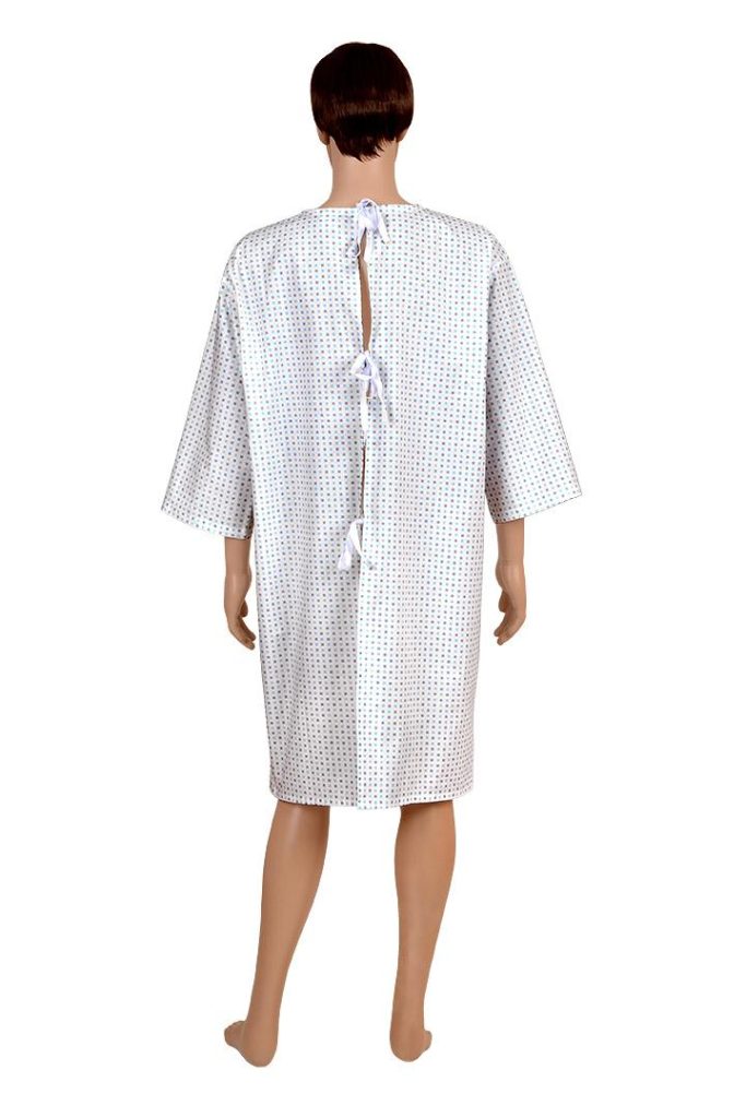 Košile pro pacienty Anděl červená/modrá fontána má v zadní části zavazování na tkanice a tříčtvrteční délku rukávů. Materiál: kvalitní vysrážená 100% bavlna s jemným vzorem. Praní na 95°C.