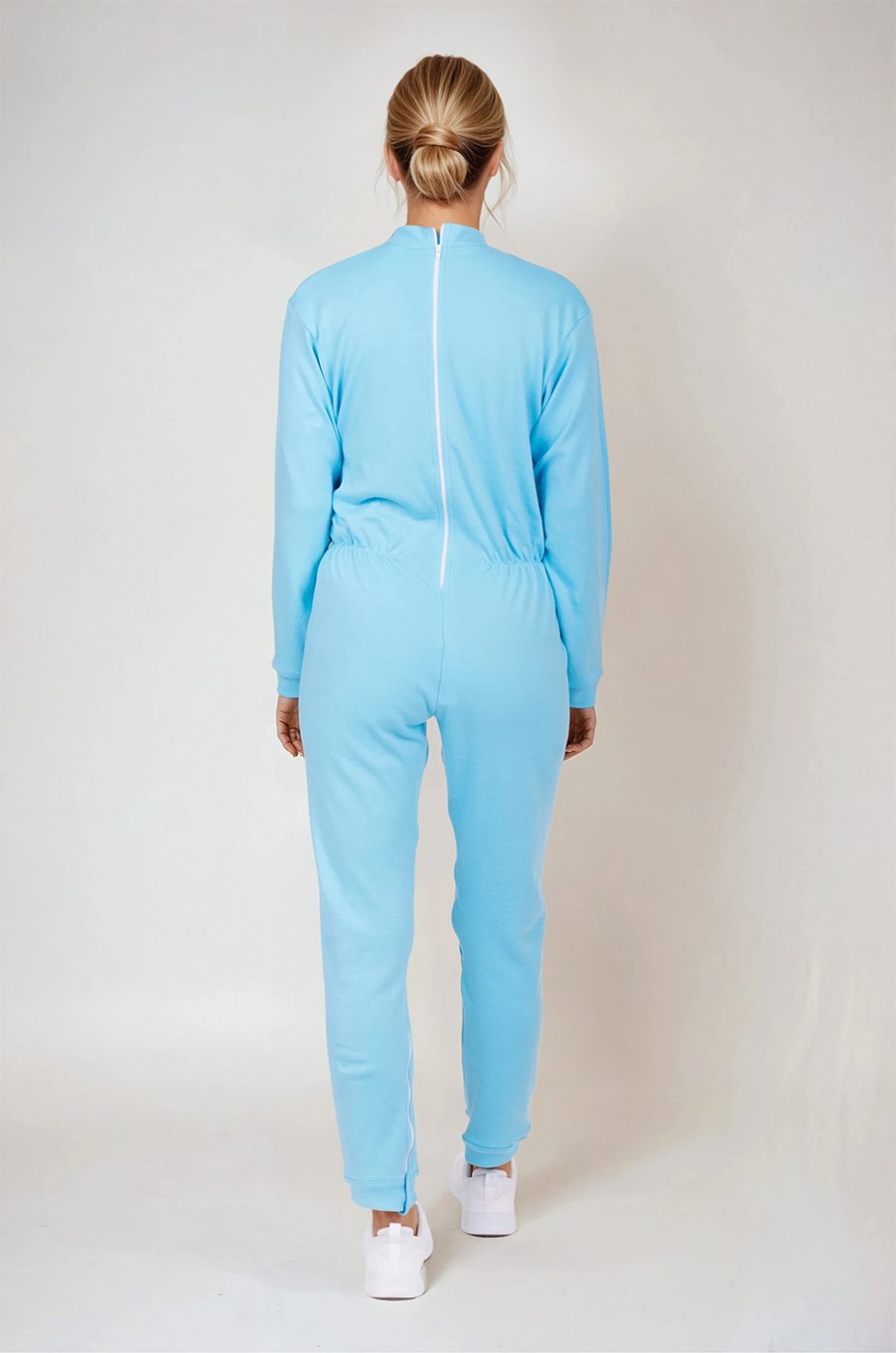 Overal pro inkontinentní pacienty má praktický dlouhý zip na zádech, který zabraňuje pacientovi samovolně odstraňovat plenky či inkontinenční vložky. Tento důmyslný prvek nejen chrání důstojnost pacienta, ale také usnadňuje práci personálu nebo pečujících rodinných příslušníků. Střih je dostatečně prostorný, aby neomezoval v pohybu, ale zároveň dostatečně přiléhavý, aby oděv držel na místě a nekrčil se.