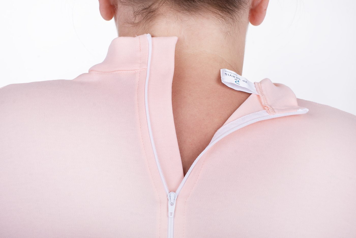 Zip v oblasti rozkroku má bezpečnostní pojistku jezdce tak, aby ho pacient nemohl samovolně rozepnout, což je důležité zejména v případě pacientů s demencí nebo jiným duševním onemocněním. Kombinace zipů zezadu i mezi nohama tak umožňuje pohodlnou manipulaci při hygieně a zároveň zajišťuje, že pacient bude mít overal vždy bezpečně zapnutý.