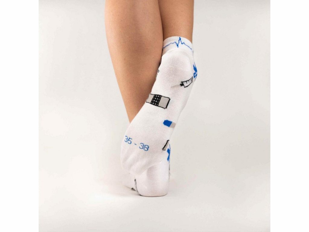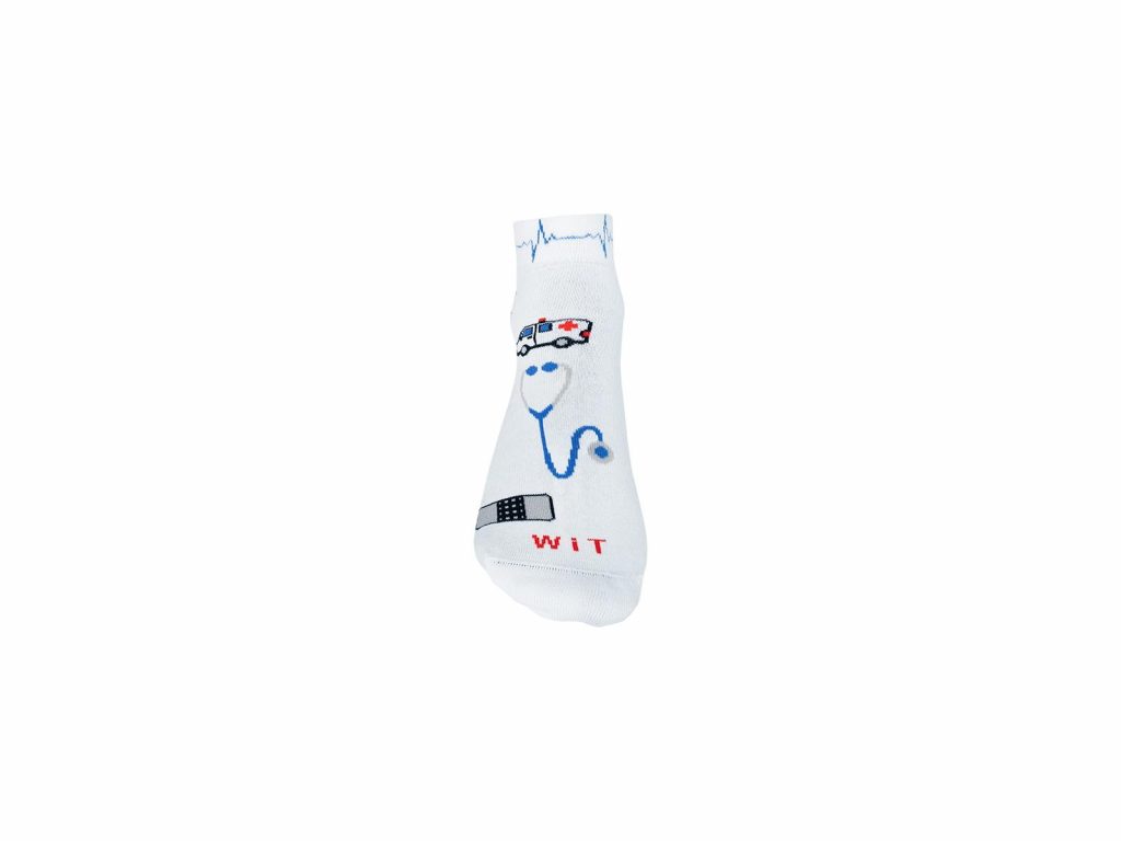 Ponožky potisk bílé nízké Medic s originálním vzorem, pohodlným neškrtícím lemem. Materiál: 80% bavlna, 15% polyamid, 5% elastan. Praní: na 40°C.