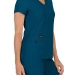 Dámská pracovní halena Becca v petrolejové barvě, s klasickým výstřihem do V, lehká tkanina odvádějící vlhkost, 4 kapsy včetně skryté kapsy na mobil s potiskem podšívky, pružná smyčka pro uchycení jmenovky, kontrastní potisk na spodní straně lemu krku, lehký strečový materiál, který není nutné žehlit, vícestehové prošívání ve švech pro delší životnost oděvu. Materiál: 95% polyester + 5% spandex. Praní: na 30°C.
