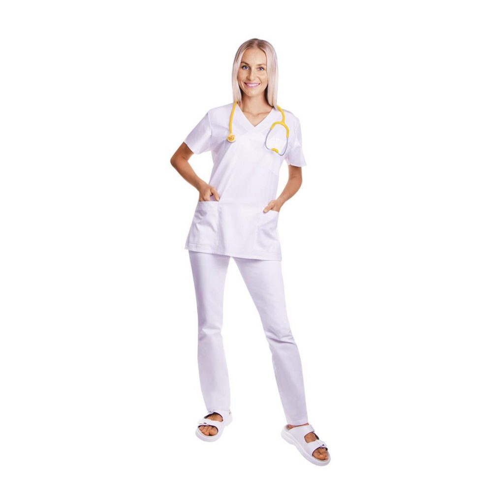Bílá barva navíc podporuje dojem čistoty a hygieny, což je důležité zejména v kontaktu s pacienty nebo klienty. Působí profesionálně a neutrálně, a proto je vhodná i jako součást jednotného pracovního dress code ve zdravotnických a kosmetických zařízeních.