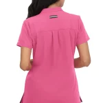 Moderní Halena Driven v růžové barvě, s mandarinkovým límečkem a zipem u krku , 2 přední kapsy + 2 boční kapsy, boční rozparky, přiléhající k tělu, poutko pro uchycení jmenovky. Materiál: 73% polyester + 22% umělé hedvábí + 5% spandex. Praní: na 30°C.