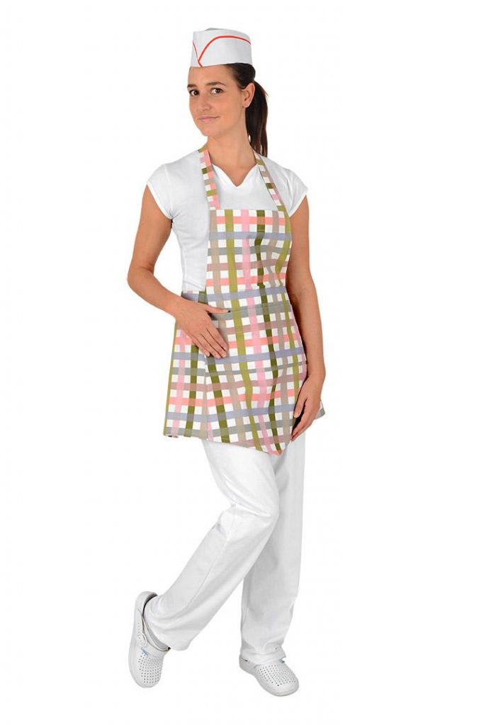 Pracovní zástěra s laclem dámská Ricci má v přední části praktickou kapsu, zavazování v pase a za krkem. Rozměry zástěry délka 65cm a šířka 68cm. Materiál: 100% bavlna Praní: 60°C.