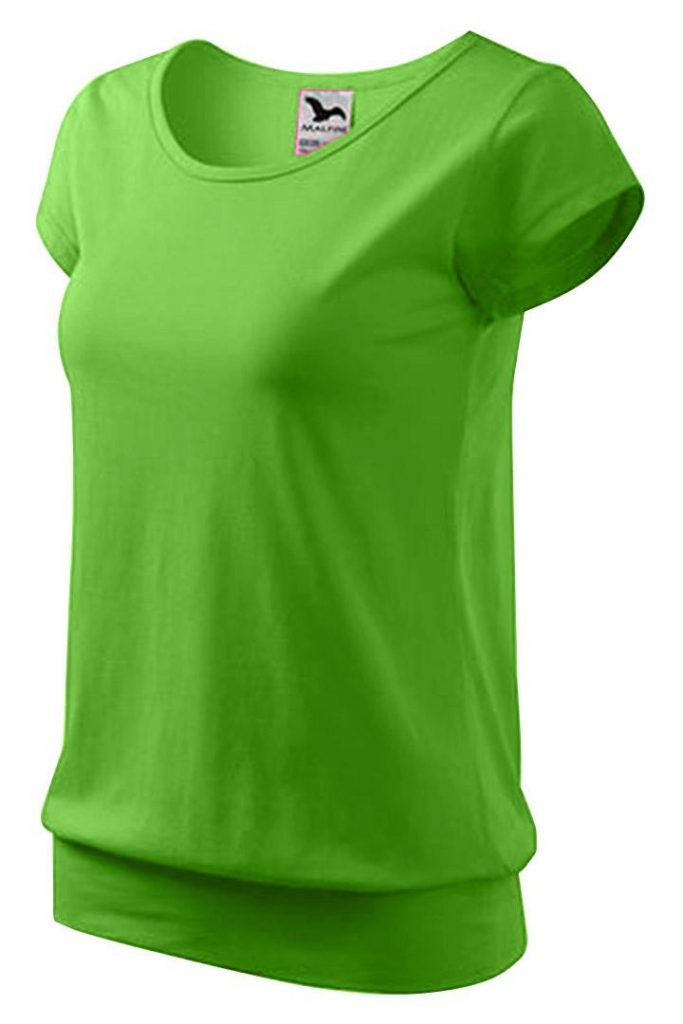 Tričko dámské apple green TR-08 s širokým lemem v pase, s krátkými rukávy a volným střihem je opatřeno silikonovou úpravou, dík které je vhodné pro digitální potisk, výšivku, přímý sítotisk a transférový potisk. Materiál: 100% bavlna 150g/m2. Praní: 40°C.