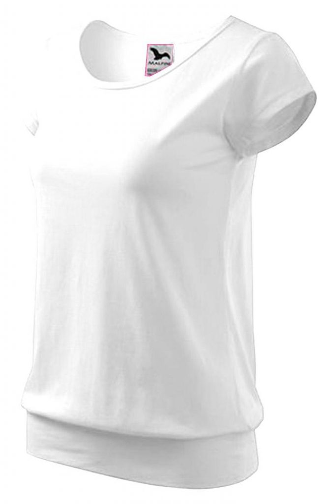 Tričko dámské bílé TR-08 s širokým lemem v pase, s krátkými rukávy a volným střihem je opatřeno silikonovou úpravou, dík které je vhodné pro digitální potisk, výšivku, přímý sítotisk a transférový potisk. Materiál: 100% bavlna 150g/m2. Praní: 40°C.