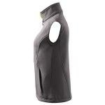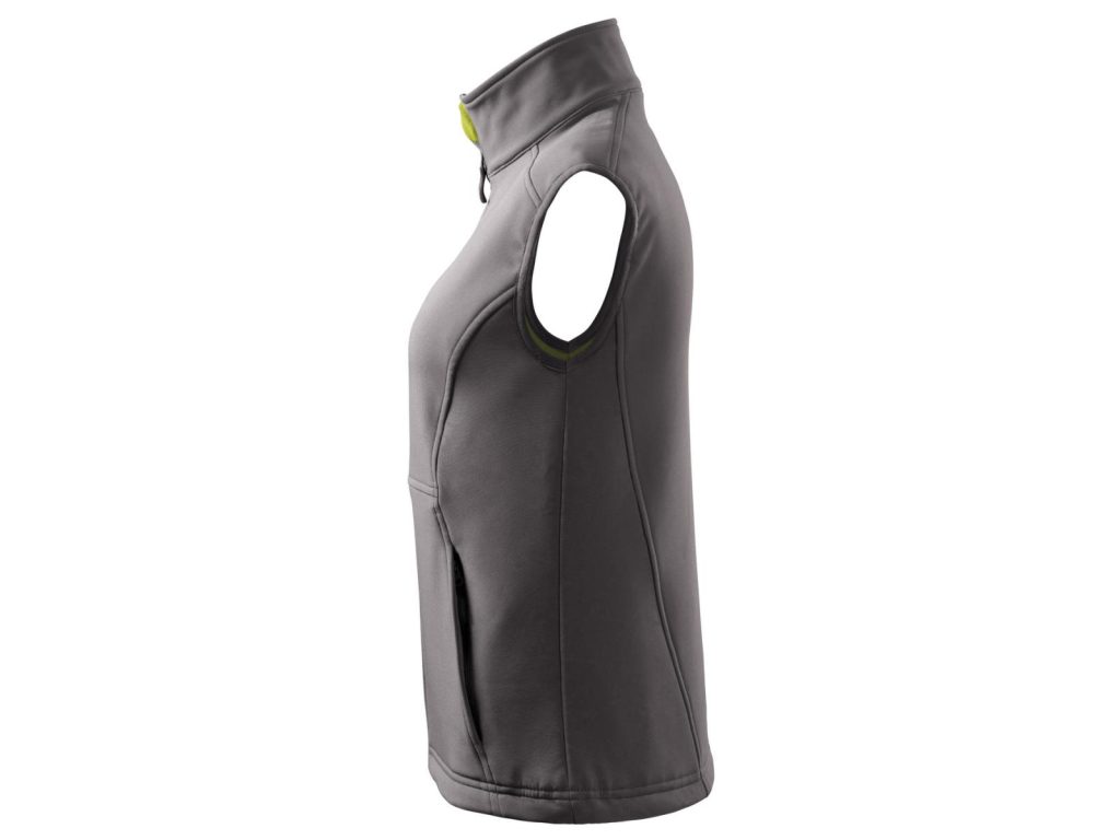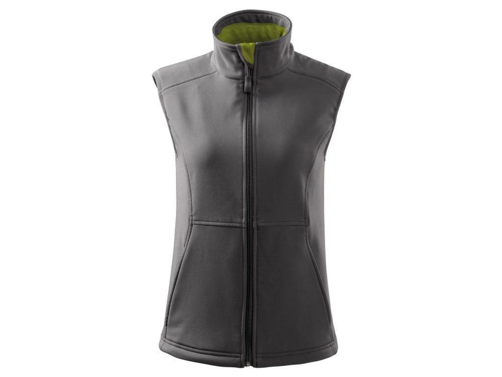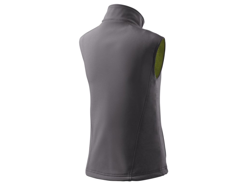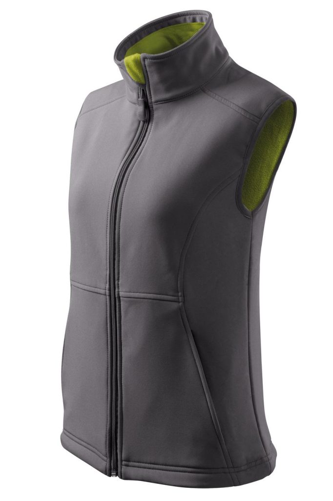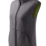 Softshellová dámská vesta šedá z 2vrstvého softshellu má lehce vypasovaný střih, vnitřní fleece s antipilingovou úpravou, kontrastními prvky, celopropínacím spirálovým zipem s krytkou brady, v dolním lemu lze stáhnout elastickou šňůrkou, kapsy na zip skryté v členících švech. Materiál: Softshell – 94% polyester, 6% elastan, Fleece – 100% polyester 280g/m2. Praní: na 30°C.