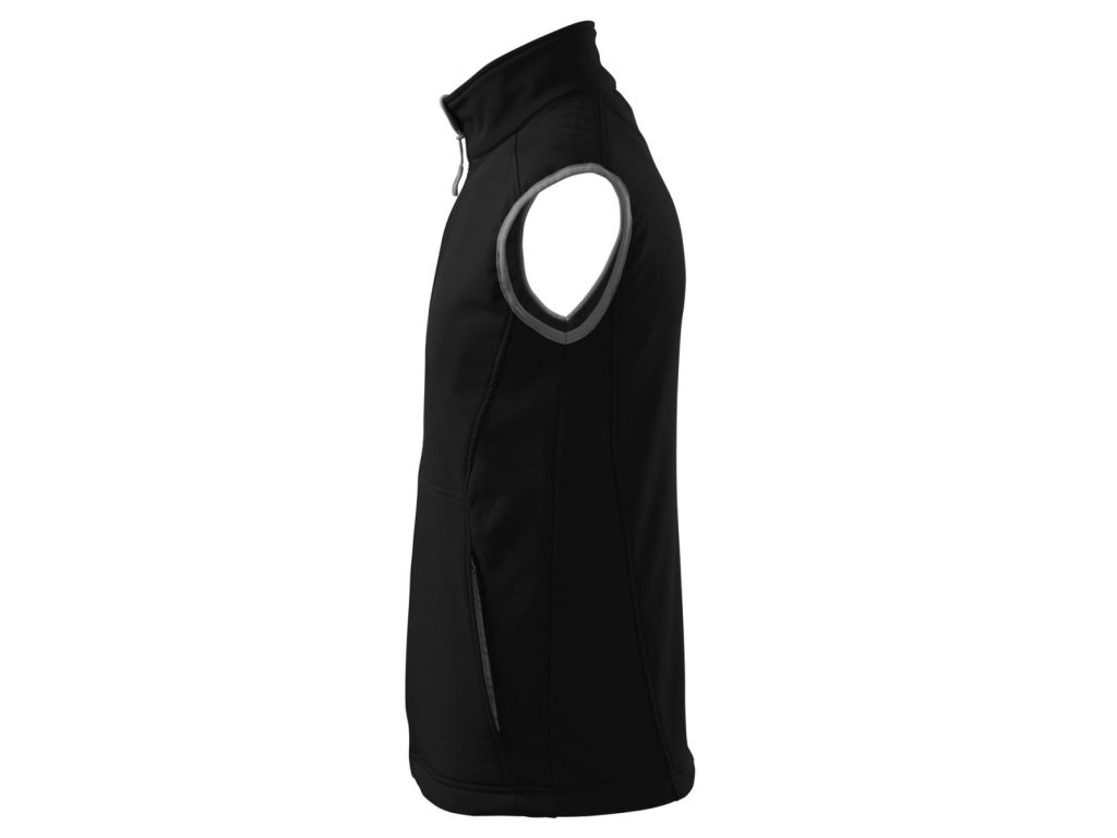 Softshellová pánská vesta černé z 2vrstvého softshellu má lehce vypasovaný střih, vnitřní fleece s antipilingovou úpravou, kontrastními prvky, celopropínacím spirálovým zipem s krytkou brady, v dolním lemu lze stáhnout elastickou šňůrkou, kapsy na zip skryté v členících švech. Materiál: Softshell – 94% polyester, 6% elastan, Fleece – 100% polyester 280g/m2. Praní: na 30°C.