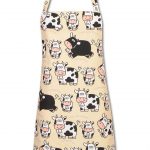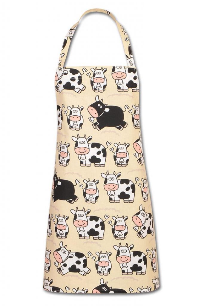 Stylová zástěra se vzorem krav s laclem a praktickým zavazováním vzadu. Materiál: 100% bavlna, 150g/m2. Rozměry: 65cm šířka, 68cm délka (výška). Praní: na 40°C.