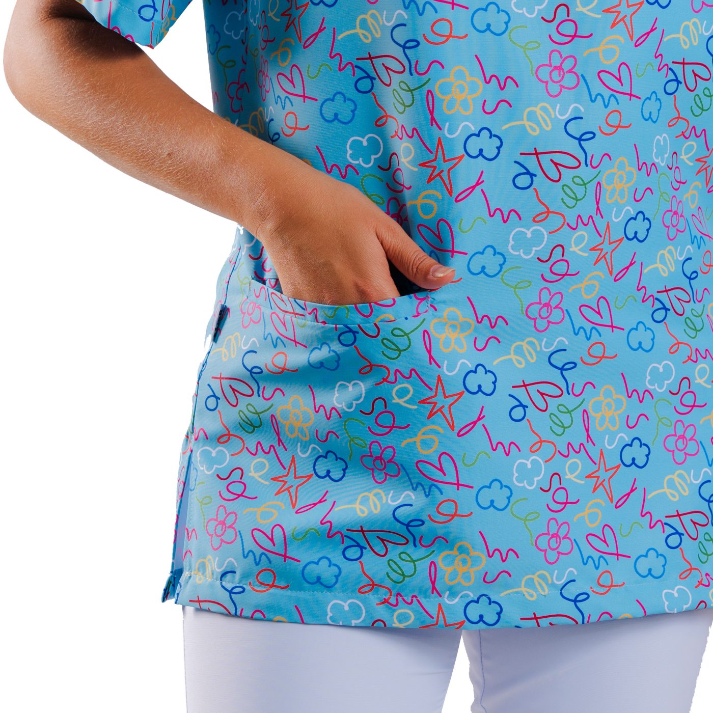 Halena Uni Agáta UniCare má originální a kreativní potisk designem od Agathy Ruiz de la Prady, jedné z nejuznávanějších designérek ve světě módy. Unisex pracovní halena má krátké rukávy, výstřih do V a 2 praktické kapsy. Boční rozparky a zadní záševky zajišťují lichotivý a pohodlný střih, který umožňuje volný pohyb během pracovního dne.