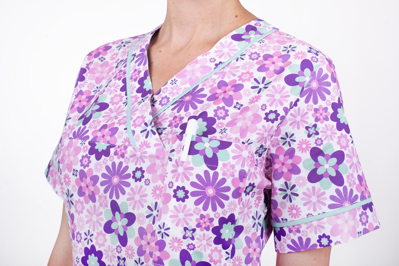 Zdravotnické haleny s potiskem Julia-B Květinový motiv – Styl, který léčí úsměvem